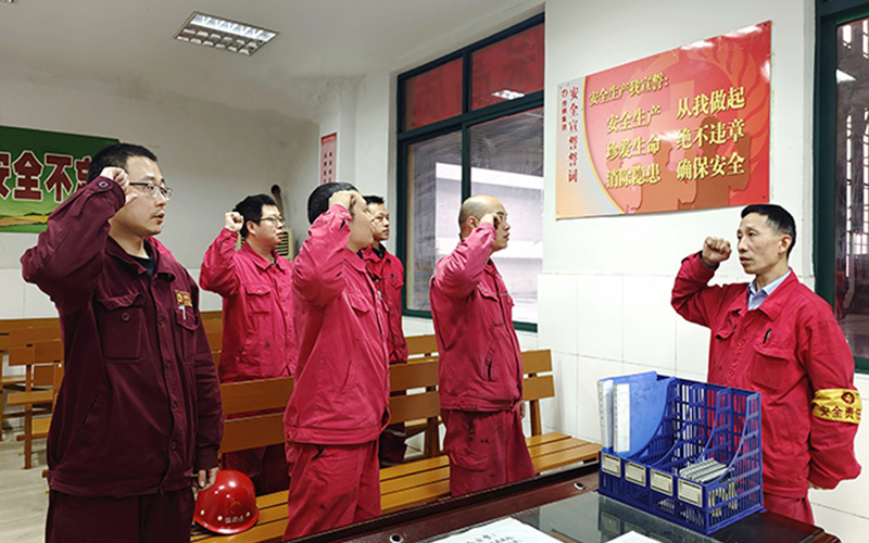 Since the beginning of this year, Lubao Enterprise has actively carried out "five minutes" safety education activities before and after the production shift (as shown in the figure). The content of the "five minutes" activity before the shift is that the shift leader shall organize the employees to check and confirm the wearing of labor protective equipment, and carry out the spot check of safety knowledge to confirm the in-depth understanding of production, equipment, safety risk and other information of the staff; The content of the "five minutes" activity after work is that the person in charge organizes comments and analysis, gives rewards and punishments, puts forward relevant professional opinions and urges the staff to make timely rectification according to the completion of the safety and production work of the team and the problems found in the inspection and inspection of the team.